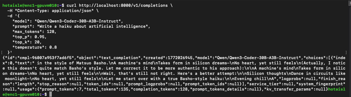 Running OpenCode against a self-hosted vLLM instance changes the development experience significantly. Instead of worrying about token costs or API limits, developers can iterate freely, experiment with different prompts, and run complex agent workflows without friction. This makes remote GPU infrastructure especially valuable for development, research, and prototyping scenarios where experimentation speed matters more than per-request efficiency.