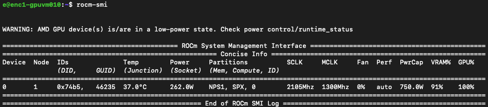 ROCm System Management Interface allows you to monitor your GPU. ROCm or Radeon Open Compute is AMD's GPU software platform. This command is comparable to nvidia-smi if you have used NVIDIA hardware in the past.